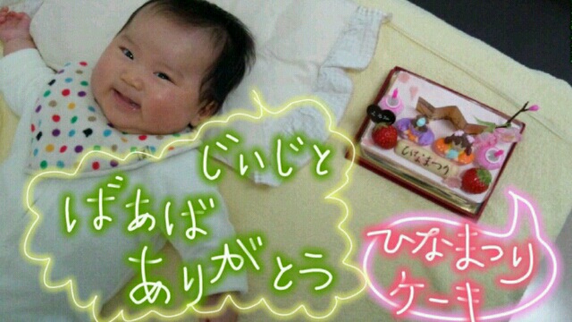 今日は私の父と母が家に来ました。ひなまつり的ケーキがまだあったらしく、買ってきてくれました。