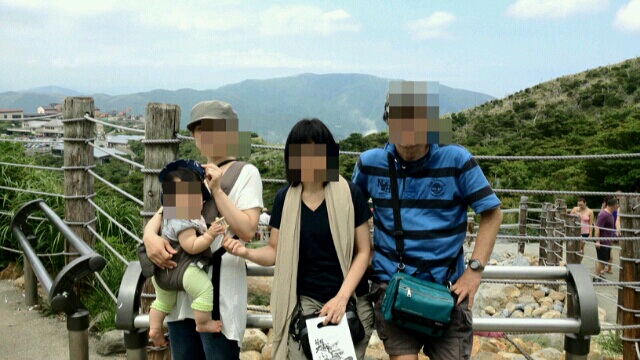 大涌谷の階段を子ども持ってのぼって疲れて機嫌の悪い私(笑)