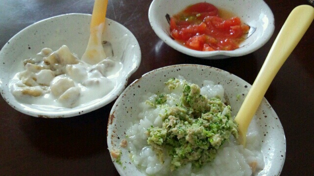 反応が良かったメニューは、だしを濃くした野菜の和風煮込みと、パン粥のシチュー風。つーか、普通に大人が食べて美味しかったら赤ちゃんも美味しいよね。ってゆう。味付けしなくても美味しく作れば美味しくできるって気付きました。