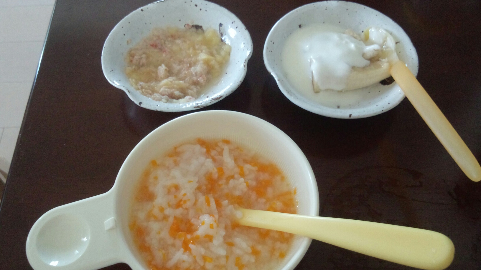 ○ニンジン小さじ3+お粥80g+野菜スープを煮たニンジン粥