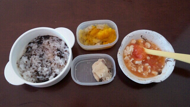 で、だんだんつかみ食べメニューが増えて、今日の夜はこんな感じ。