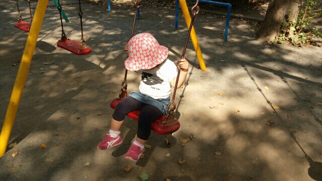 滑り台はお母さんの方がうまいんだわよ。