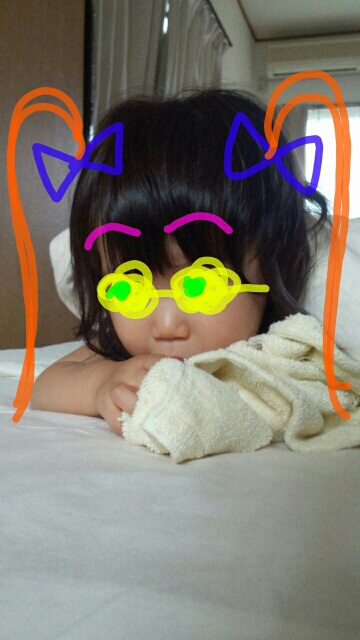 お気に入りのタオルケットがないとイライラしてしまうらしく、どこへでも持っていきたがる。
