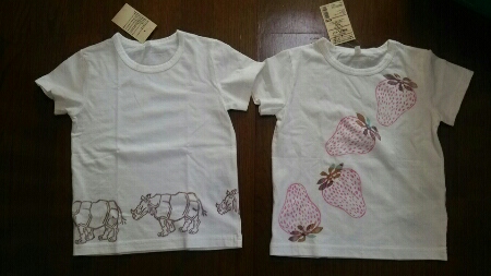 こないだ大人用に押したはんこで無印良品の100㎝白Tシャツ(700円)に押してみました。