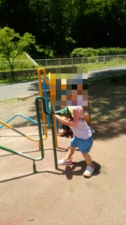母もまた、アスレチック的な遊具で明らかに大人用でない大きさの穴などをくぐらされたり…