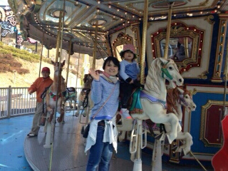 誰もいない遊園地(というか、デパートの屋上遊園レベル)に係員が5人て。人件費の無駄遣い…?